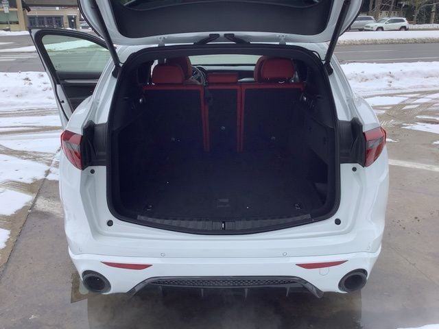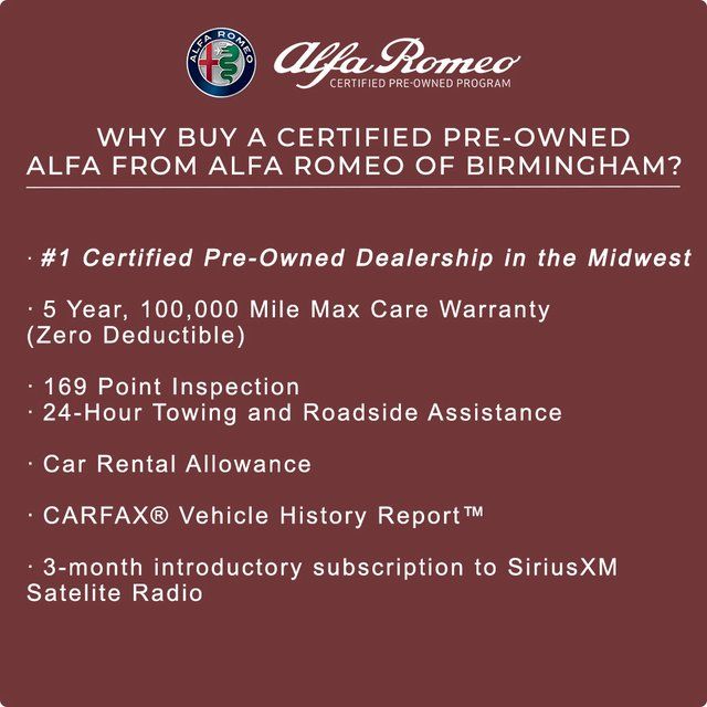 Golling Alfa Romeo of Birmingham is pleased to offer this 2022 Alfa Romeo Stelvio Veloce in Alfa White with Red Leather. This Stelvio is very well equipped with Active Assist Plus Package (Active Blind Spot Assist, Driver Attention Alert, Highway Assist System, Intelligent Speed Assist (ISA), Lane Keep Assist, Traffic Jam Assist, and Traffic Sign Recognition), Quick Order Package 22S Veloce (115V Auxiliary Power Outlet, Aluminum Interior Trim, Aluminum Steering Column Mounted Paddle Shifters, Body Color Appearance Kit, Dark Miron V Scudetto Grille, Gloss Black Window Surround Moldings, Gloss Red Calipers w/White Script, Limited Slip Differential Rear Axle, Power 8-Way Adjustable Driver Seat, Power Adjust 8-Way Front Passenger Seat, Power Adjustable Bolster, Sport Leather Seats, and Sport Rear Diffuser), Alfa Romeo Certified Pre-Owned Certified, Heated front seats, Heated rear seats, Leather Seats, ParkView Rear Back-Up Camera, Power Liftgate, Power moonroof, Red Seats, and Wheels: 21" x 8.5" Dark 5-Hole Aluminum.