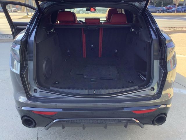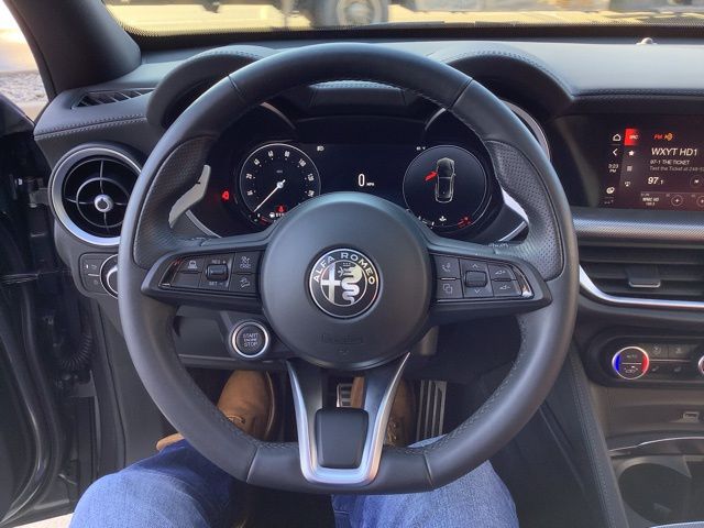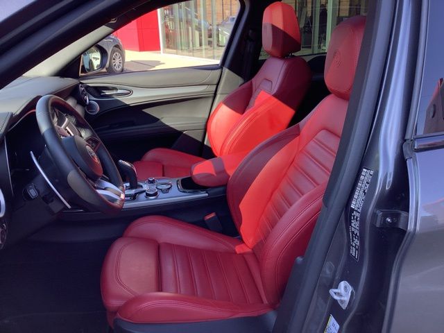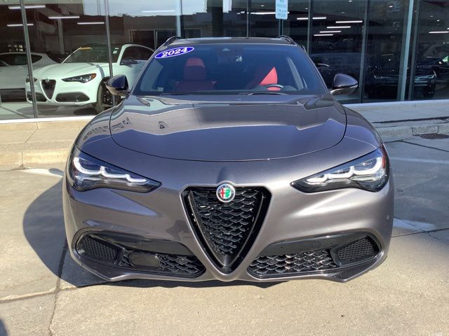 Golling Alfa Romeo of Birmingham is pleased to offer this 2024 Alfa Romeo Stelvio Veloce in Vesuvio Gray Metallic with Red Leather. This Stelvio is very well equipped with Premium Interior & Sound Package (harman/kardon Premium Audio and Leather Dash & Upper Doors), Quick Order Package 22S Veloce (Aluminum Steering Column Mounted Paddle Shifters, Dark Miron V Scudetto Grille, Front Strut Tower Brace, Limited Slip Differential Rear Axle, Power Adjust 8-Way Front Passenger Seat, Power Adjustable Bolster, Sport Leather Seats, Sport Rear Diffuser, and Volcano Black Body Kit), Alfa Romeo Certified Pre-Owned Certified, Heated front seats, Heated rear seats, Red Leather Sport Seats, and Wheels: 21" x 8.5" Dark 5-Hole Aluminum.