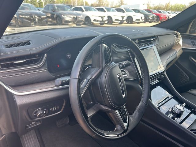 Golling Alfa Romeo of Birmingham is excited to offer this 2023 Jeep Grand Cherokee L Overland in Diamond Black Crystal Pearlcoat with Global Black Leather. This Grand Cherokee L is very well equipped with Advanced Protech Group III (Active Driving Assist System, Heads-Up Display, Integrated Off-Road Camera, Interior Rear Facing Camera, Intersection Collision Assist System, Leather Wrapped Steering Wheel, Map-In-Cluster Display, Night Vision/Pedestrian-Animal Detection, Rear Back Up Camera Washer, and Surround View Camera System), Luxury Tech Group IV (2nd Row Manual Window Shades, ATC w/4 Zone Temp Control, Driver Power Seat Back Massage, Front Passenger Power Seat Back Massage, Nappa Leather Seats (TL), Passenger Seat Memory, Power Adjust 12-Way Driver Seat, Power Adjust 12-Way Front Passenger Seat, Rearview Autodim Digital Display Mirror, and Wireless Charging Pad), Quick Order Package 22N, Grand Cherokee L Overland, 4D Sport Utility, 3.6L V6 24V VVT, 8-Speed Automatic, 4WD, Diamond Black Crystal Pearlcoat, Global Black Leather, 10 Speakers, 3rd row seats: split-bench, Active Noise Control System, Adaptive suspension, Air Conditioning, Alloy wheels, AM/FM radio: SiriusXM with 360L, Anti-whiplash front head restraints, Audio memory, Auto High-beam Headlights, Auto-leveling suspension, Automatic temperature control, Aux Battery, Brake assist, Bumpers: body-color, Delay-off headlights, Dual front side impact airbags, Electronic Stability Control, Emergency communication system, Four wheel independent suspension, Front anti-roll bar, Front Bucket Seats, Front Center Armrest w/Storage, Front fog lights, Front License Plate Bracket, Fully automatic headlights, Hands-Free Active Driving Assist System, Heated door mirrors, Heated front seats, Heated rear seats, Knee airbag, Low tire pressure warning, Memory seat, Navigation System, Normal Duty Suspension, Occupant sensing airbag, Outside temperature display, Overhead airbag, Overhead console, Panic alarm, Passenger door bin, Passenger vanity mirror, Power driver seat, Power Fold Seatbacks, Power Liftgate, Power moonroof, Power passenger seat, Power steering, Power windows, Radio data system, Radio: Uconnect 5 Nav w/10.1" Display, Rain sensing wipers, Rear air conditioning, Rear anti-roll bar, Rear reading lights, Rear window defroster, Rear window wiper, Reclining 3rd row seat, Remote keyless entry, Security system, Speed control, Speed-Sensitive Wipers, Split folding rear seat, Steering wheel memory, Steering wheel mounted audio controls, Traction control, Variably intermittent wipers, and Ventilated front seats.